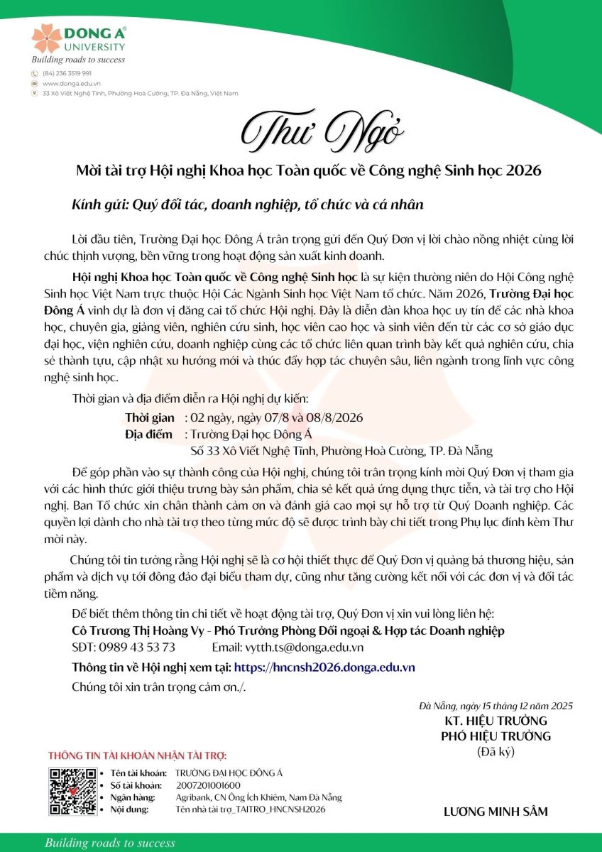 Ngày 07 – 08 tháng 08 năm 2026, Trường Đại học Đông Á, TP. Đà Nẵng, Việt Nam